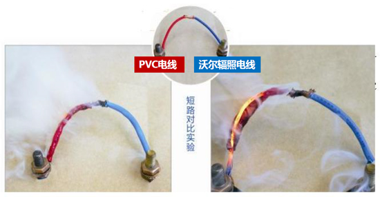 PVC電線(xiàn)與輻照交聯(lián)電線(xiàn)短路測試對比圖